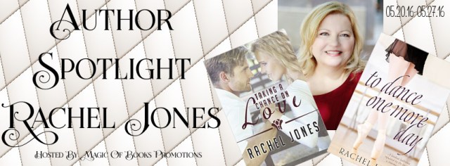 Release day for Rachel’s debut novel, To Dance One More Day, occurred in June 2014. Her second book, Taking A Chance On Love, released in October 2015. She is working on her third manuscript and is planning her first series. Rachel’s books reflect her love of the performing arts. Working as a registered nurse for twenty-five years has influenced the threads of medical drama woven into her storylines.