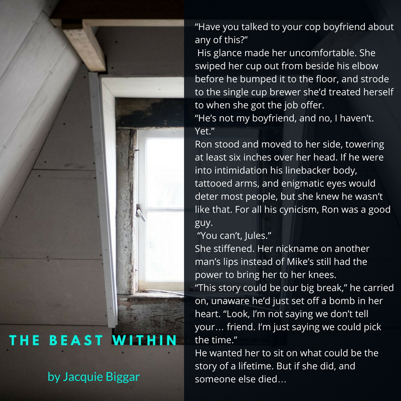 JACQUIE BIGGAR is a USA Today bestselling author of Romantic Suspense who loves to write about tough, alpha males who know what they want, that is until they’re gob-smacked by heroines who are strong, contemporary women willing to show them what they really need is love. She is the author of the popular Wounded Hearts series and has just started a new series in paranormal suspense, Mended Souls.